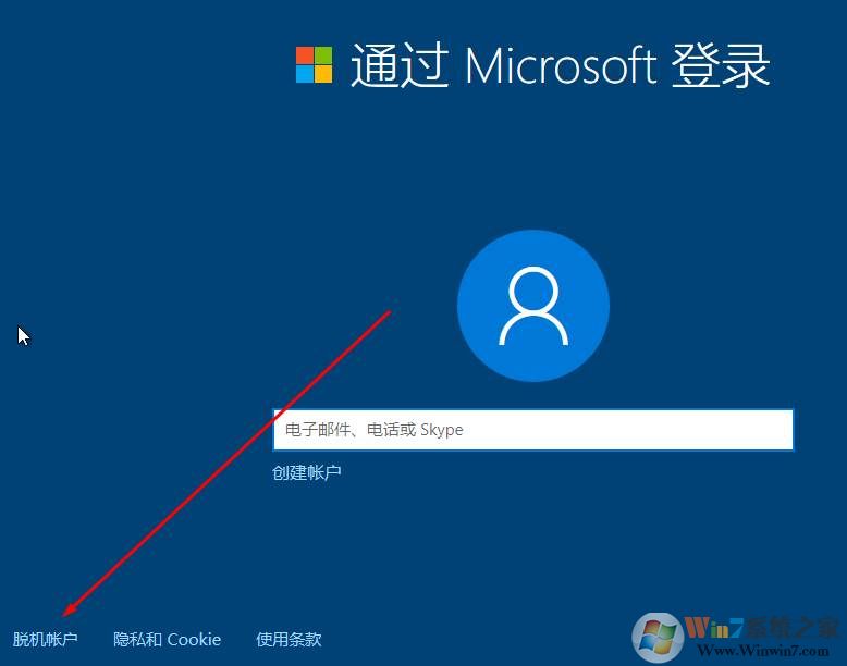 1、当出现通过Microsoft帐户登录的界面时,我们点击左下角的,脱机帐户 选项;
