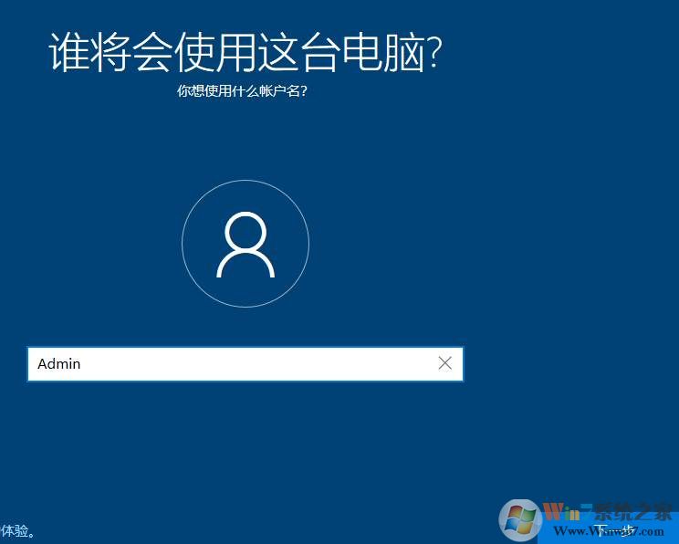 3、好了,现在出来了,我们再输入一个本地帐户名称,点击下一步,密码不设置也可以。