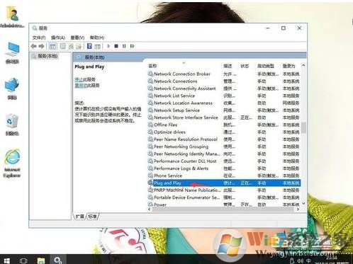 2、打开服务项目之后,我们找找有没有一个 Plug and Play服务,一些用户可能会发现这个服务被禁用了,问题就出在这里。