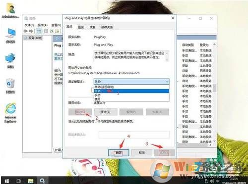 3、双击打开之后,如果是禁用的,把禁用改成手动或是自动都可以,然后启动服务。
