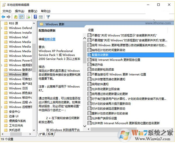 2、找到计算机配置→管理模板→Windows组件→Windows更新