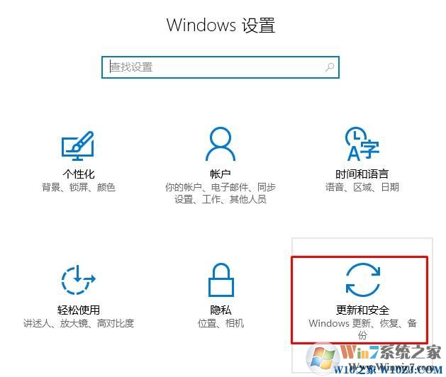 1、按下“Win+I”组合键打开【Windwos 设置】,点击【更新与安全】;