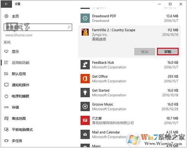 此时系统已经不会自动安装任何应用了,之前已经安装的应用可以在设置→ 系统→ 应用和功能中卸载,如上图所示。