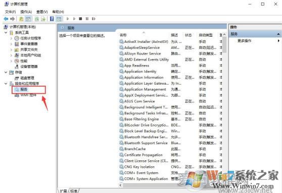 2、在管理页面依次打开【服务和应用程序】-【服务】,点击【服务】,如图: