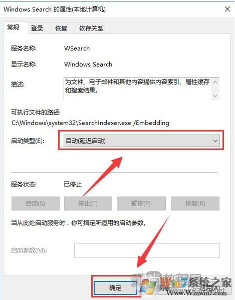 4、在该页面将【启动类型】改为【自动(延迟启动)】,设置完成后点击【确定】,如图: