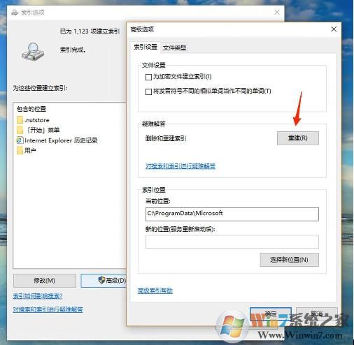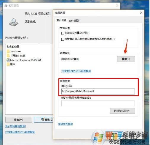 至于将 Windows.edb 转移至其他路径,在刚才那个「重建」按钮下方,就有一个转移选项,大家可以自定义一个文件夹用来放这个文件就可以了,这样也可以避免C盘空间不足的问题。