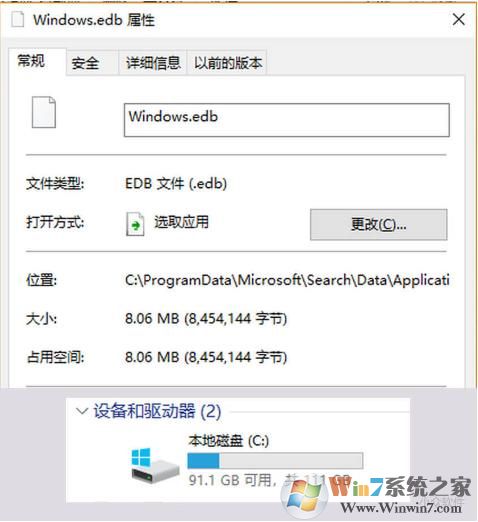 Windows.edb文件位置:C:\ProgramData\Microsoft\Search\Data\Applications\Windows\Windows.edb