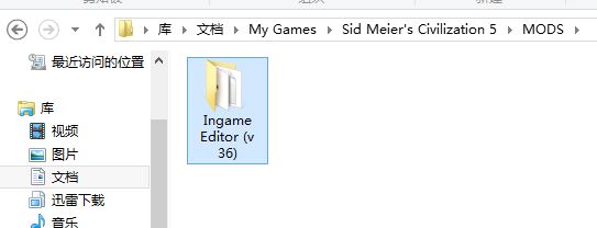 2、解压出来应该是一个包含很多文件的文件夹,把文明5IGE编辑器的整个文件夹放到“库”下面的“文档”文件夹里面的“MyGames”文件夹里面的“Sid Meier's Civilization 5”文件夹里面的“MODS”文件夹内,如图:
