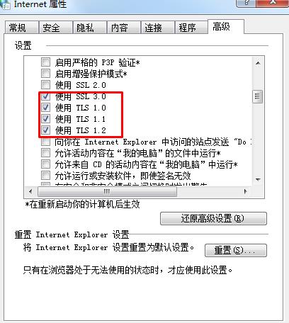 设置了好多地方,终于找到解决方法。依次打开IE的Internet选项、高级,往下拉,找到安全模块,勾上四个使用:使用SSL 3.0、使用TLS 1.0、使用TLS 1.1、TLS 1.2,点击确定就可以解决了,希望可以帮到你www.xiuchufang.com