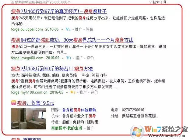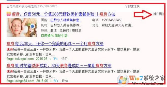 可以发现推广广告占的比重在整个页面变小了,整个推广被缩在了暗粉色的小方框内,还表明推广链接,这样对于上网的群众来说有了简单的辨识度。