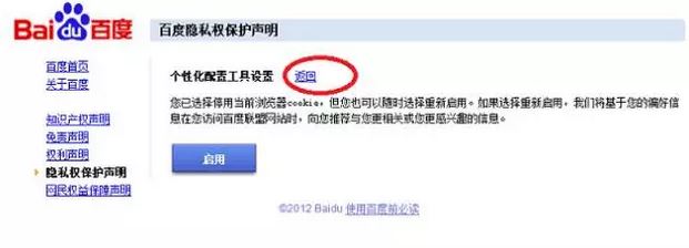 2.点开“使用百度前必读” 选择“隐私权保护声明”,往下看到蓝色小字“个性化工具”;