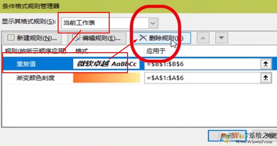 3、查看是否有大量相同且重复的条件规则,根据实际情况选择需要删除的重复规则,点击“删除规则”按钮。