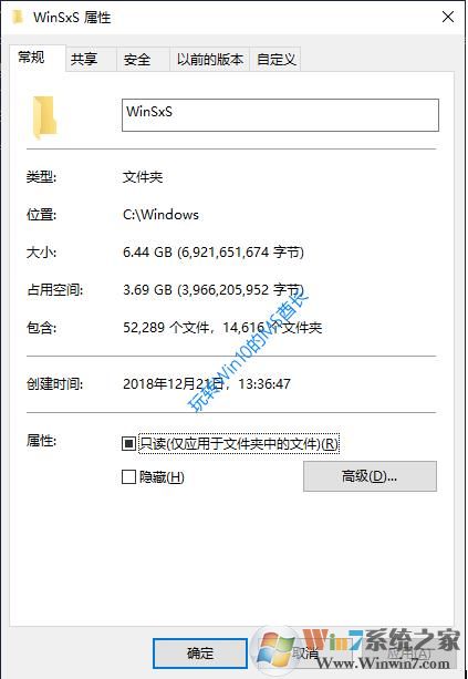 你可以查看一下自己的Win10系统中WinSxS文件夹的大小。通常的查看方法是在WinSxS文件夹上点击右键,选择“属性”,在“WinSxS属性”窗口中即可看到该文件夹的大小和占用空间。如图: