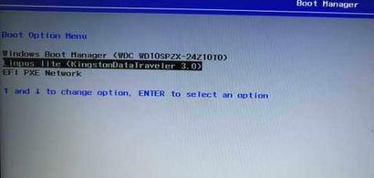7、最后按向下键,选择U盘启动盘,按下Enter即可启动。