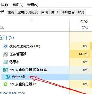 2、打开的 任务管理器窗口中找到热点资讯相关的进程,如图: