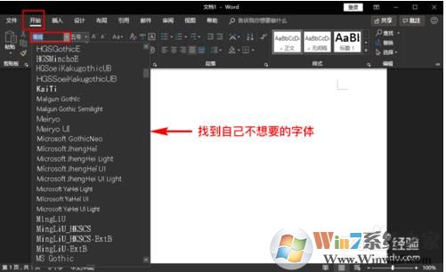 1、在Word字体选择中先看下哪个字体是我们不需要的,记下来。