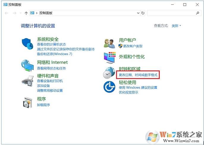 2、届现Win10控制面板后,点击“更改日期、时间或数字格式”,具体看图示。