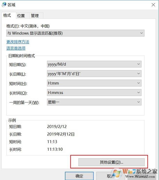 3、在打开的区域时间设置中,点击底部的“其他设置”,如图所示。