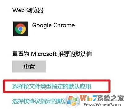 5、在右侧拉到最下面,点击“选择按文件类型指定的默认应用”;
