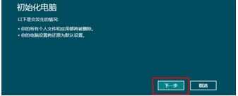 3、在弹出的“初始化电脑”弹窗里面点击“下一步”。