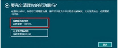 5、在接下来的“要完全清理你的驱动器吗”这个弹窗里选择“仅删除我的文件”,当然也可以选择“完全清理驱动器”,根据自己的要求而定。、