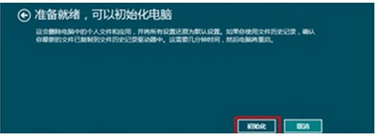 6、接下来就可以选择“初始化”,选择后就可以开始恢复过程,整个过程就不需要在操作了,等待电脑自动重启回复后,对新的操作系统进行用户名 网络等设置就可以了,win7初始化电脑成功。