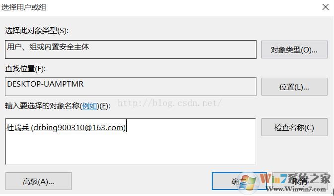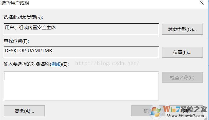 3、这时出现选择用户和组的界面,再点击【高级】按钮;