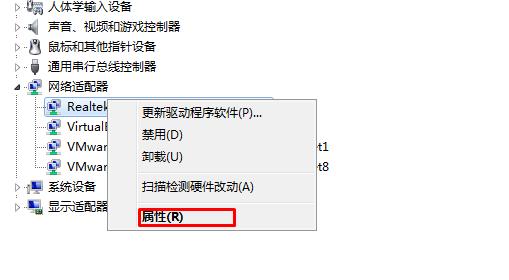 2、接下来在设备管理器的“网络适配器”中找到你的无线网卡,右键属性;
