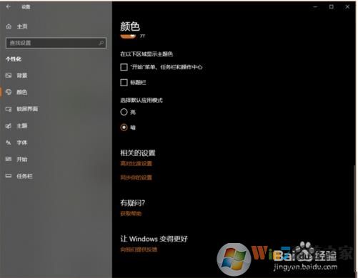 以上就是小编这次分享的关于win10开启暗黑模式的经验了,希望大家能有用。