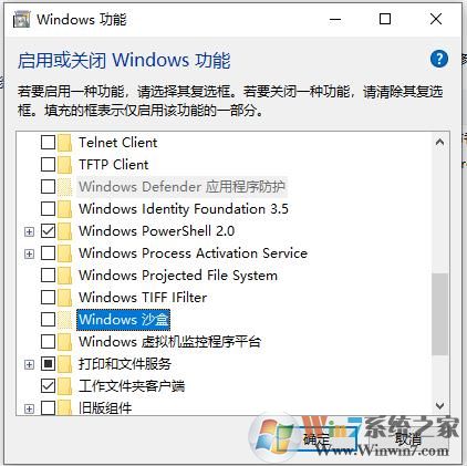 开启处理器虚拟化技术之后,我们再进入WIN10系统就可以开启windows沙盒了。