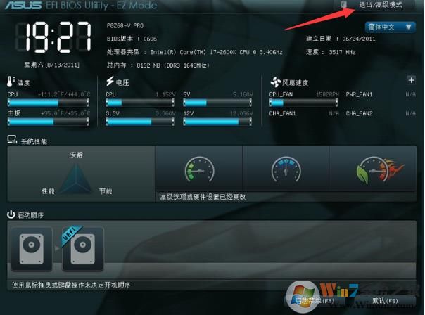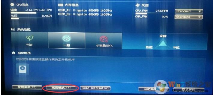 3、按F7进入<高级模式>,英文是 ( Advanced Mode )