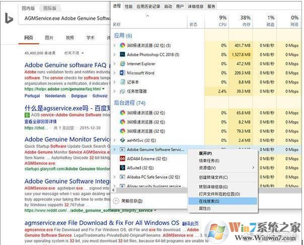 这个功能是Win10任务管理器非常人性化的一个改进,直接借助网络迅速判断进程是否有问题。