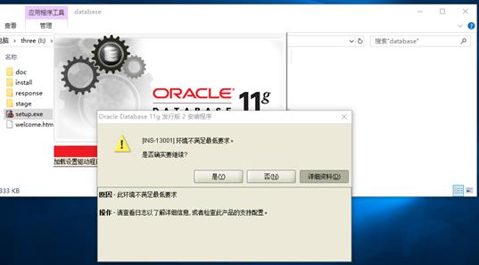3、添加完成,保存该文件后再运行setup.exe开始安装Oracle即可。