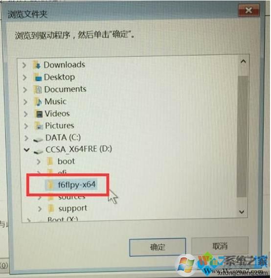 4、找到存放Raid驱动的文件夹,默认文件名为“f6flpy-x86”或“f6flpy-x64”,选择该文件,然后确定;