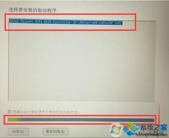 5、随后会检测到Raid模式驱动程序,点击下一步后,出现读取条开始加载此驱动。(如果提示报错建议重新加载该驱动多试几次,并且驱动文件存放的路径最好为全英文路径);