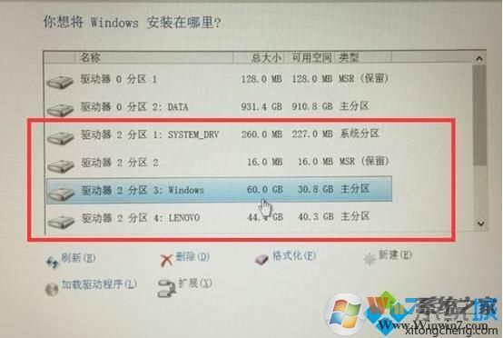 6、在加载成功后会跳回之前选择硬盘的界面,此时已经可以正常显示出机器内的固态硬盘,并且可以正常安装系统。