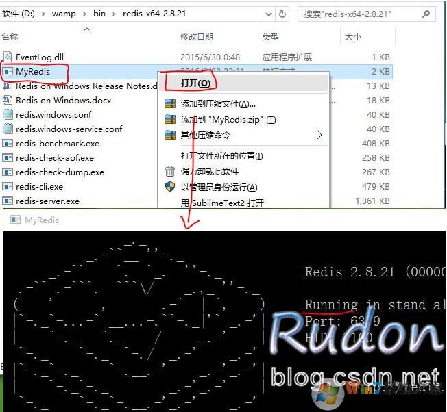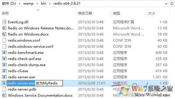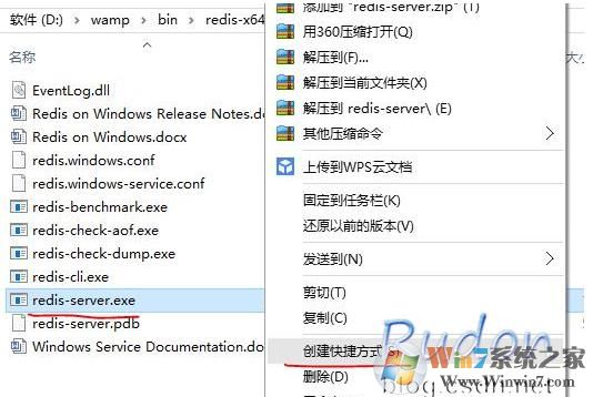 3、找到为redis-server.exe,右键创建快捷方式,并且改名为MyRedis