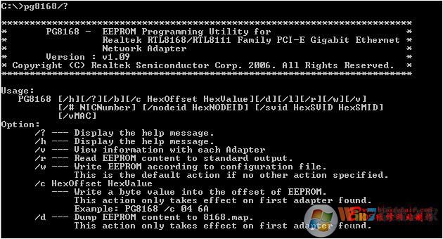 如果只是想修改网卡的MAC,可以直接运行PG8168 /c xxxxxxxxxxxx,其中XXXXXXXXXXXX即网卡的12位MAC地址,这个可根据实际输入即可。回车即可完成MAC地址的写入。