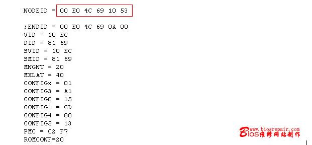 将图中的MAC地址改成我们需要的。然后保存使用PG8169 /W即可写入。注意在写入时,一定要先使用/R参数备份网卡的原MAC数据。