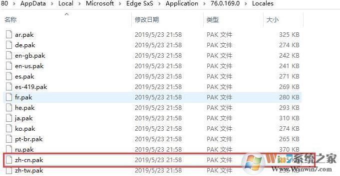 1、首先我们打开C:\Users\XXX(设置的用户名)\AppData\Local\Microsoft\Edge SxS\Application\76.0.169.0\Locales 文件夹(注意Appdata是隐藏的)