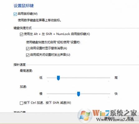 以上便是winwin7给大家分享介绍的键盘控制鼠标的操作方法!