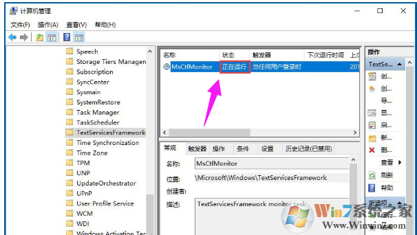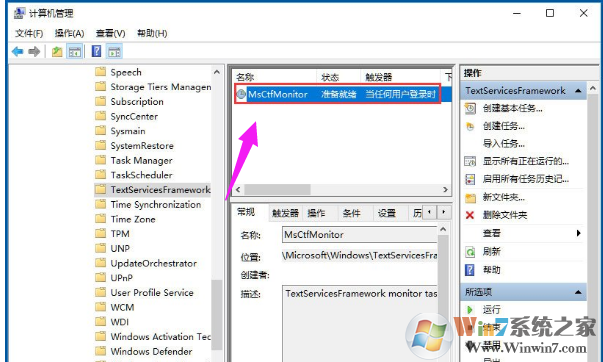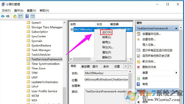 5、右键点击MsCtfMonitor计划任务,然后点运行