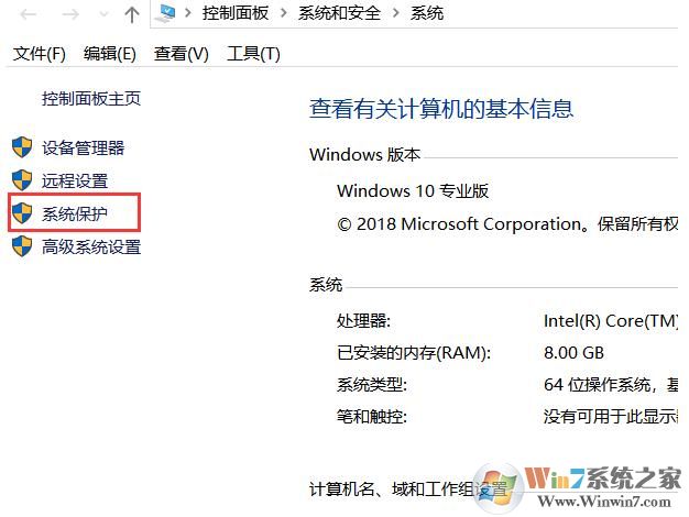 1. 右键点击桌面上的 -> 此电脑 -> 选择“属性”. -> 点击左侧的"系统保护"选项,如下图