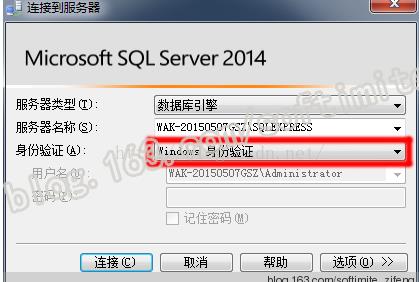 1. 在登录窗口设置身份验证,使用Windows身份验证登录数据库。