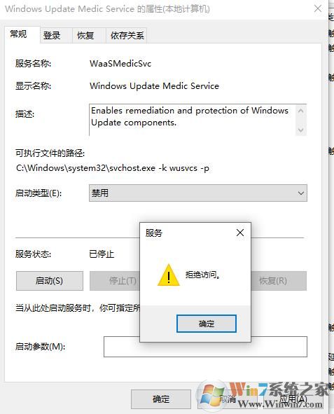 7、改好注册表之后,我们再回到“服务”窗口中找到Windows Update Medic Service服务,点击鼠标右键,在“属性-常规”和“属性-恢复”页签中,分别可以看到该服务已被禁止,且三次失败后的动作皆为“无操作”。