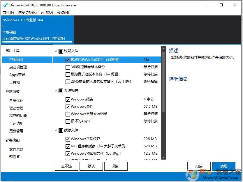 3、选择空间回收,然后勾选你要清理的项目,点击扫描按钮