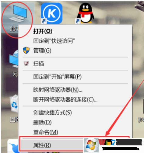 1、点桌面上的此电脑图标右键,然后点击属性,如下图
