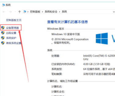 2、然后点设备管理器,如下图左边位置