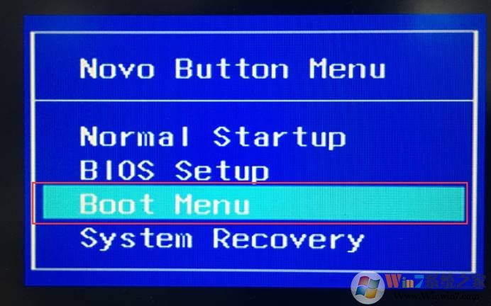 2、戳小孔后电脑会自动开机进入下图的界面,按键盘右下方的方向键选中“Boot Menu”,然后敲回车键Enter进入,然后选中U盘或者USB设备敲回车进入。台式机电脑则通过开机不停地敲击F12,进入引导项选择菜单,然后选择USB设备敲回车进入即可。