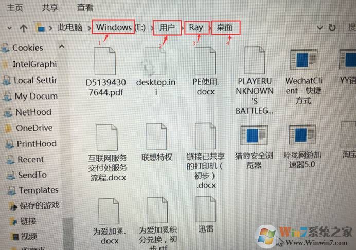 3、下图为进入PE后的界面,进去后打开桌面上的此电脑图标,按照下图红框内的路径展开(Ray为该电脑的账户名,这里选择自己电脑的开机账户名即可),找到桌面文件存放位置,然后复制后粘贴到U盘即可。